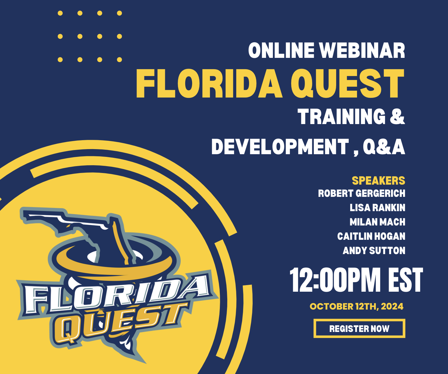 The Florida Quest Hockey Organization is excited to announce a special virtual Zoom call focused on hockey training, player development, and overall athletic growth, to be held on October 12th, 2024. The event will feature discussions with key leaders from our coaching team, followed by a live Q&A session.